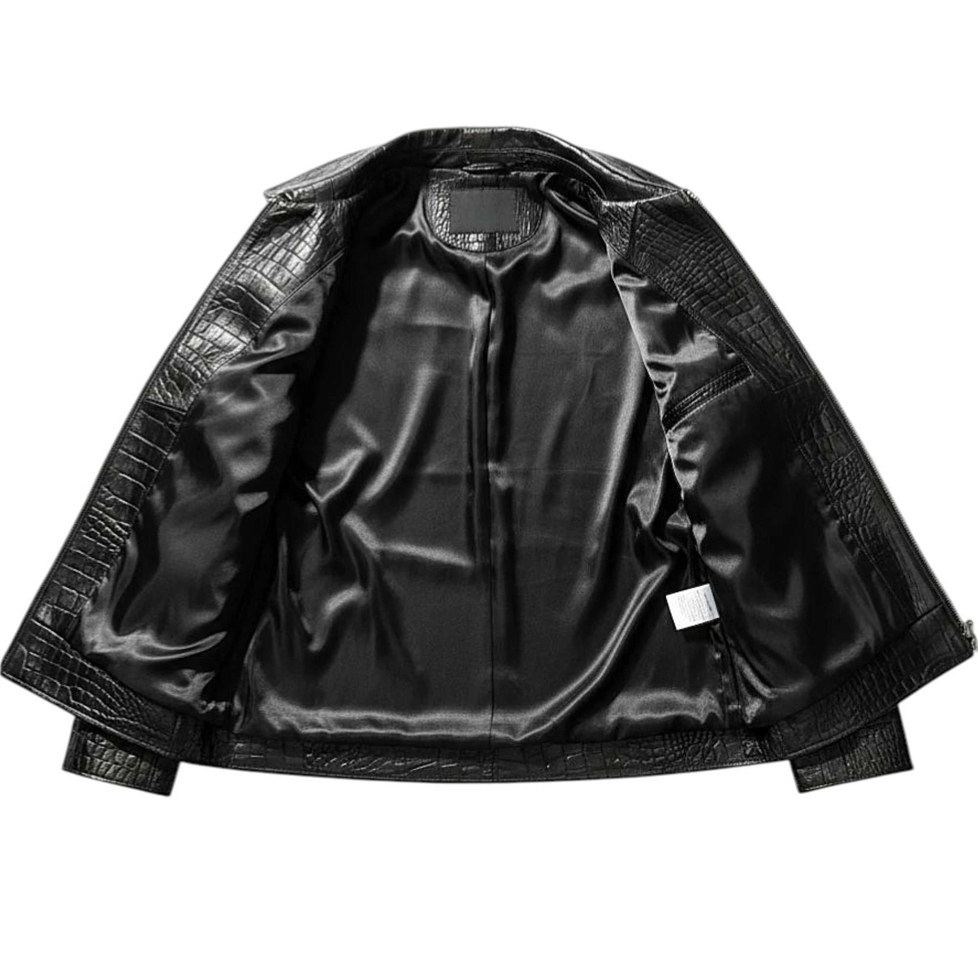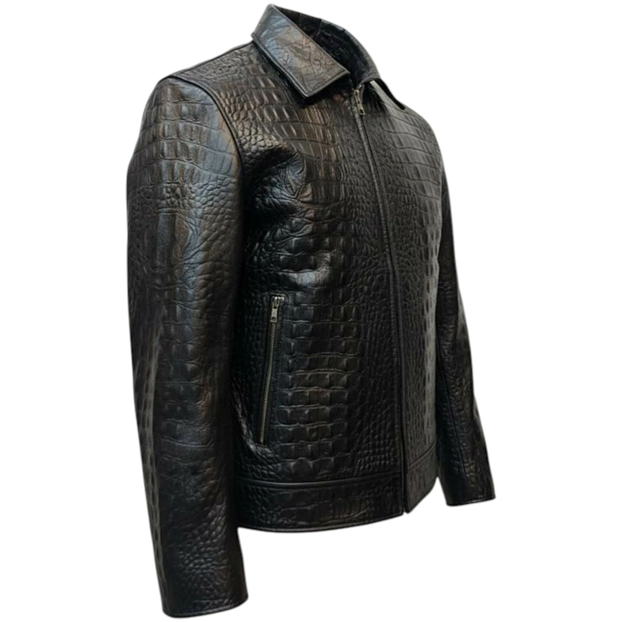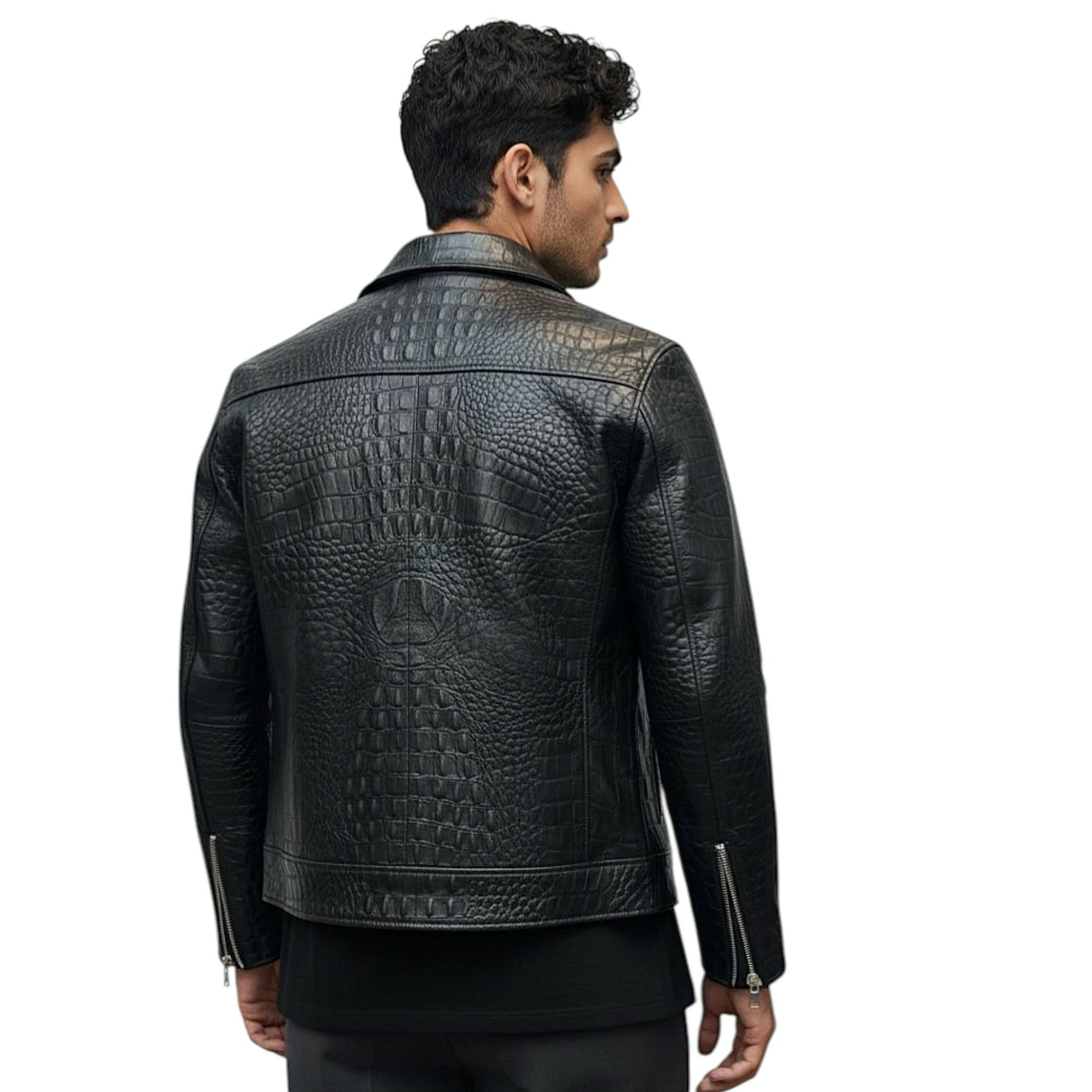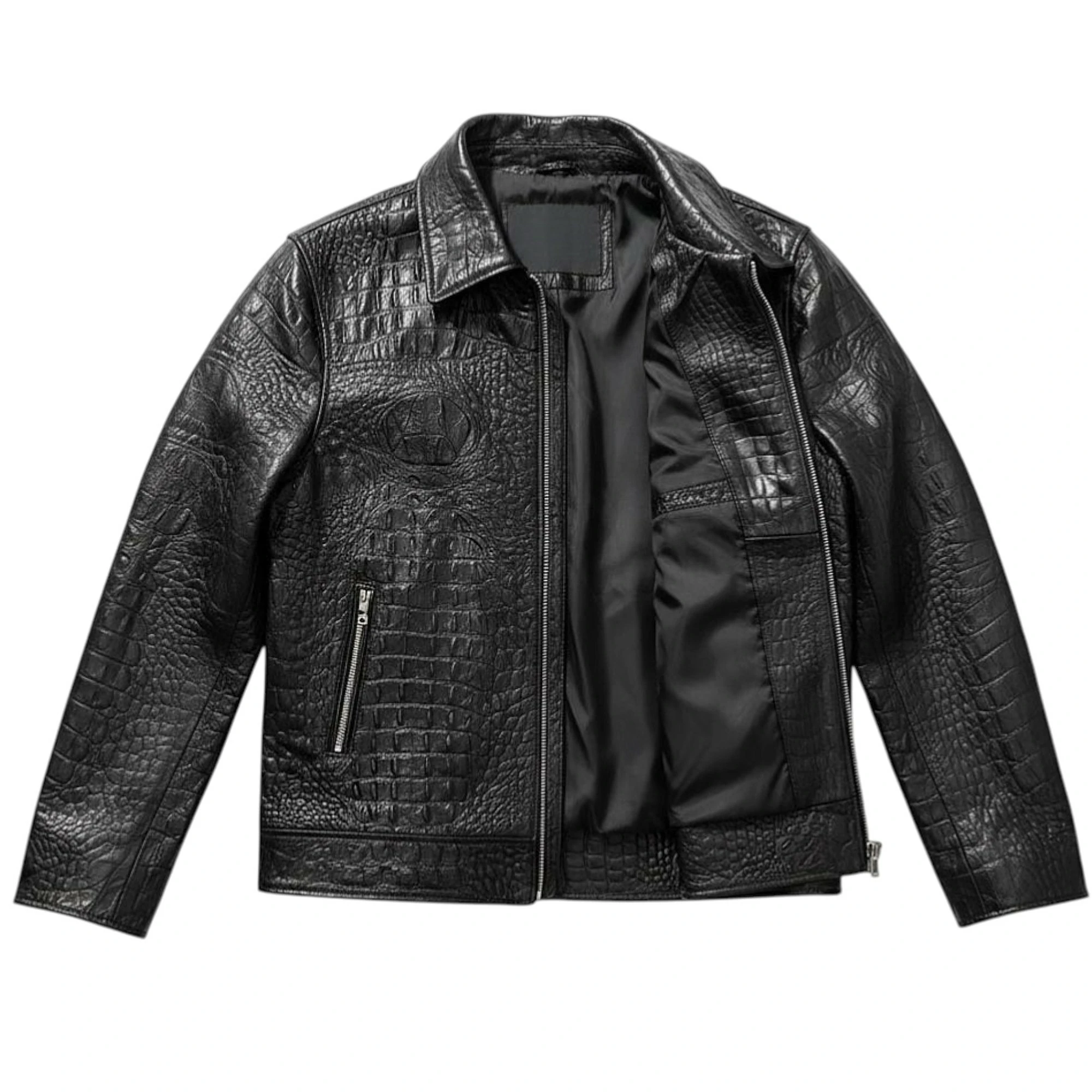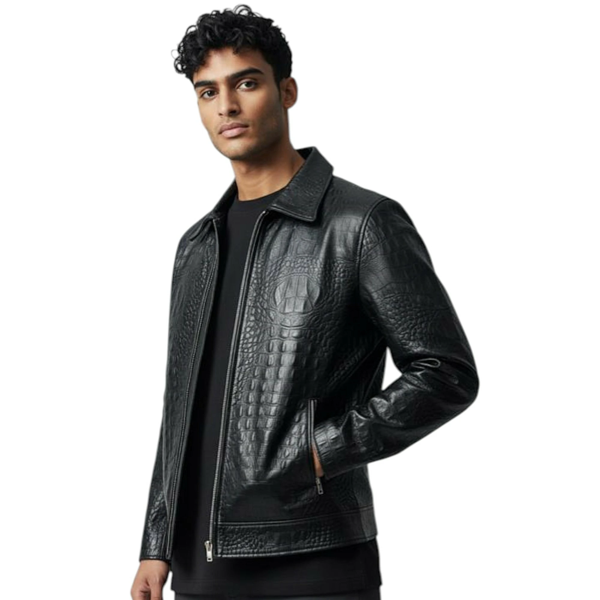 Elevate your wardrobe with this premium Jacket, a perfect combination of modern fashion and timeless craftsmanship. Designed for individuals who appreciate luxury and bold style, this jacket stands out with its distinctive crocodile-textured front panel and sleek, smooth leather sleeves.