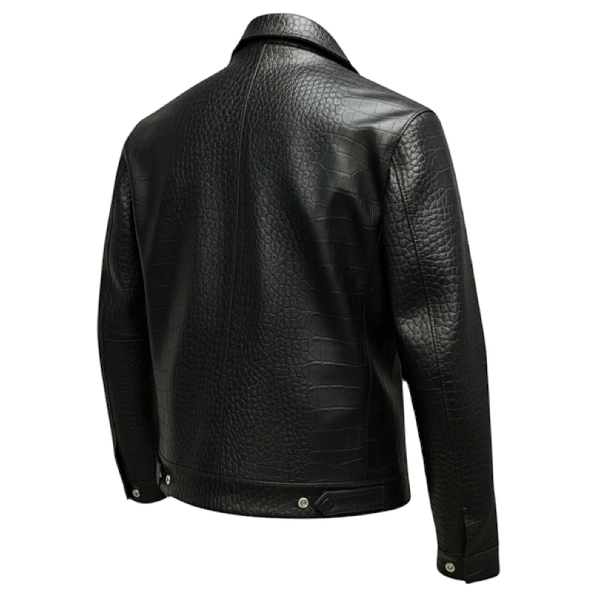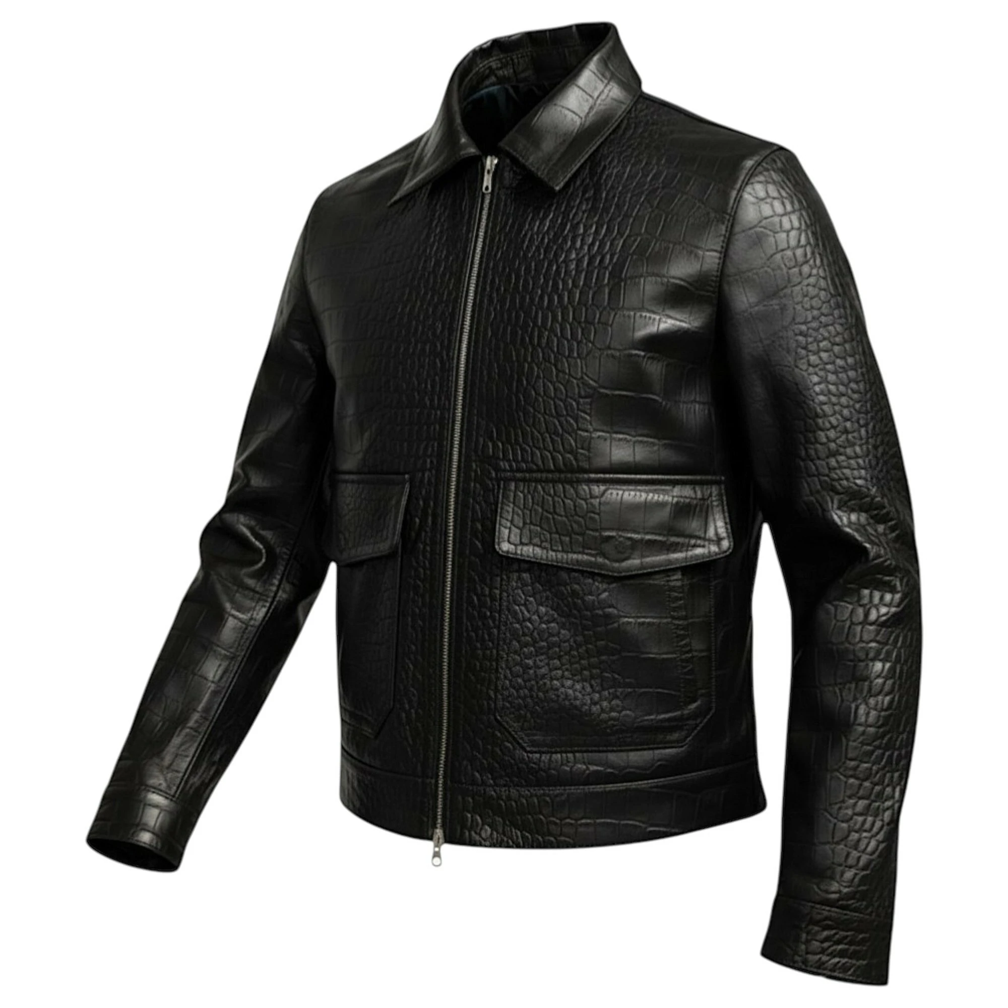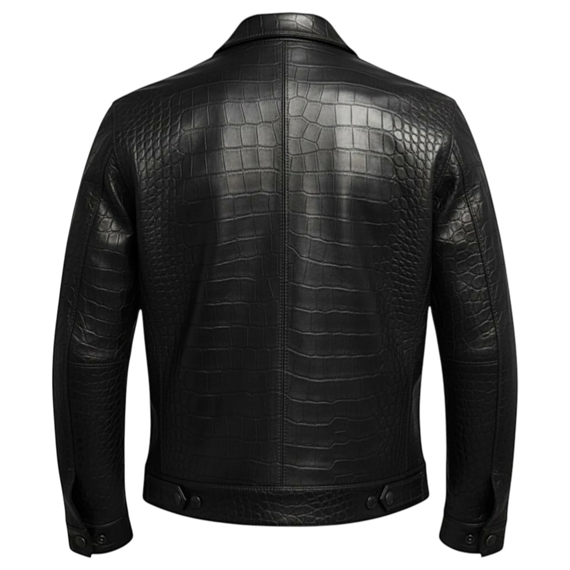 Elevate your wardrobe with this premium Jacket, a perfect combination of modern fashion and timeless craftsmanship. Designed for individuals who appreciate luxury and bold style, this jacket stands out with its distinctive crocodile-textured front panel and sleek, smooth leather sleeves.