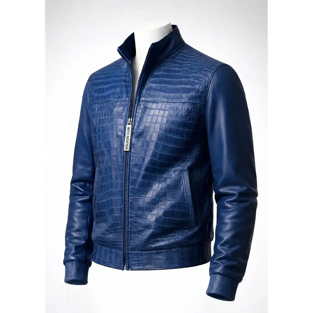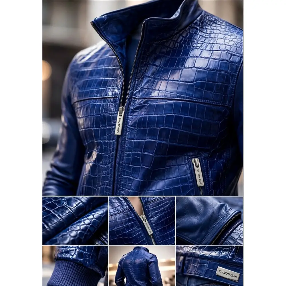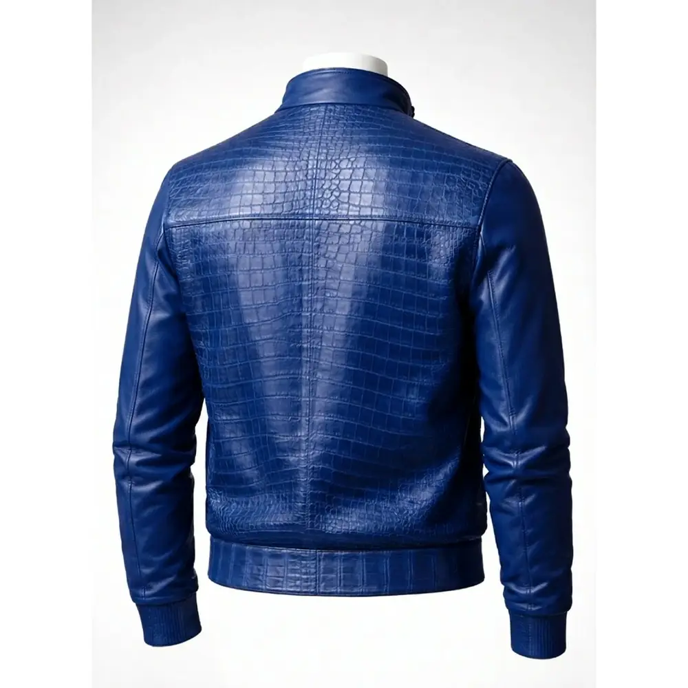 Leather Jacket Crocodile Design Blue